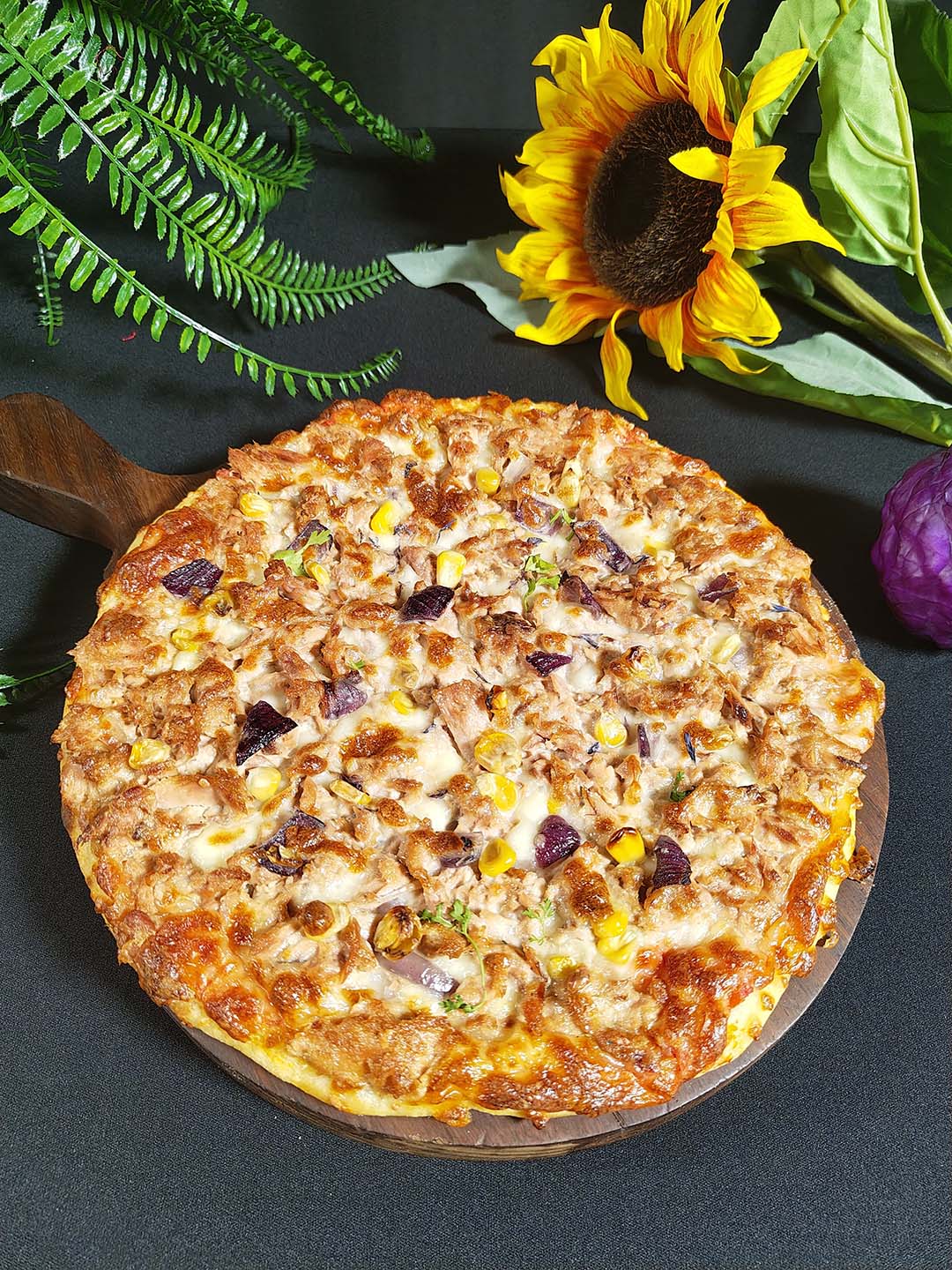 A perfect blend of rich tuna meat with corn, onions and melted mozzarella cheese makes every bite special.